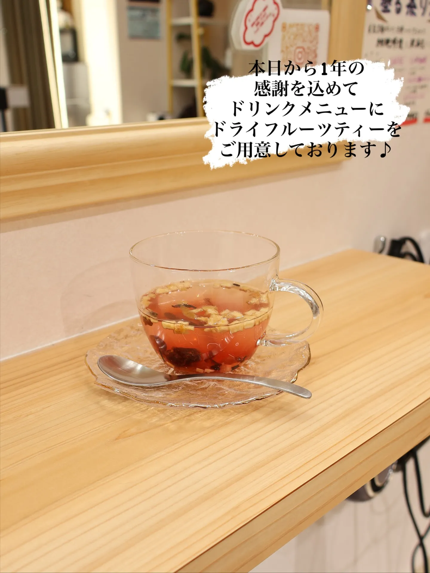 本日から1年の感謝を込めて、ドリンクメニューにドライフルーツティーをご用意しております♪
